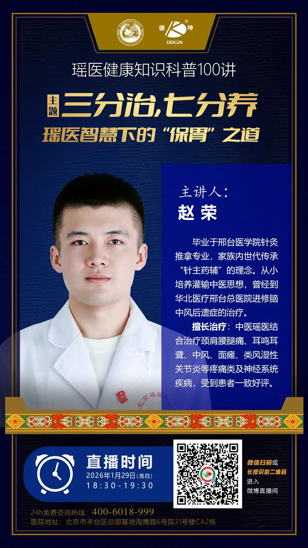 1月29日,我院赵荣医生开展了一场主题为《三分治,七分养—瑶医智慧下的“保胃”之道》的健康知识讲座,... -