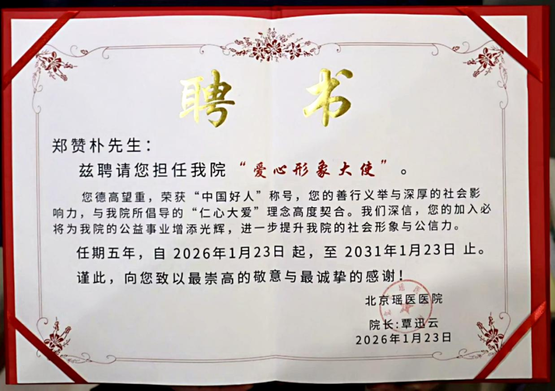 北京瑶医医院聘请“中国好人”郑赞朴为...